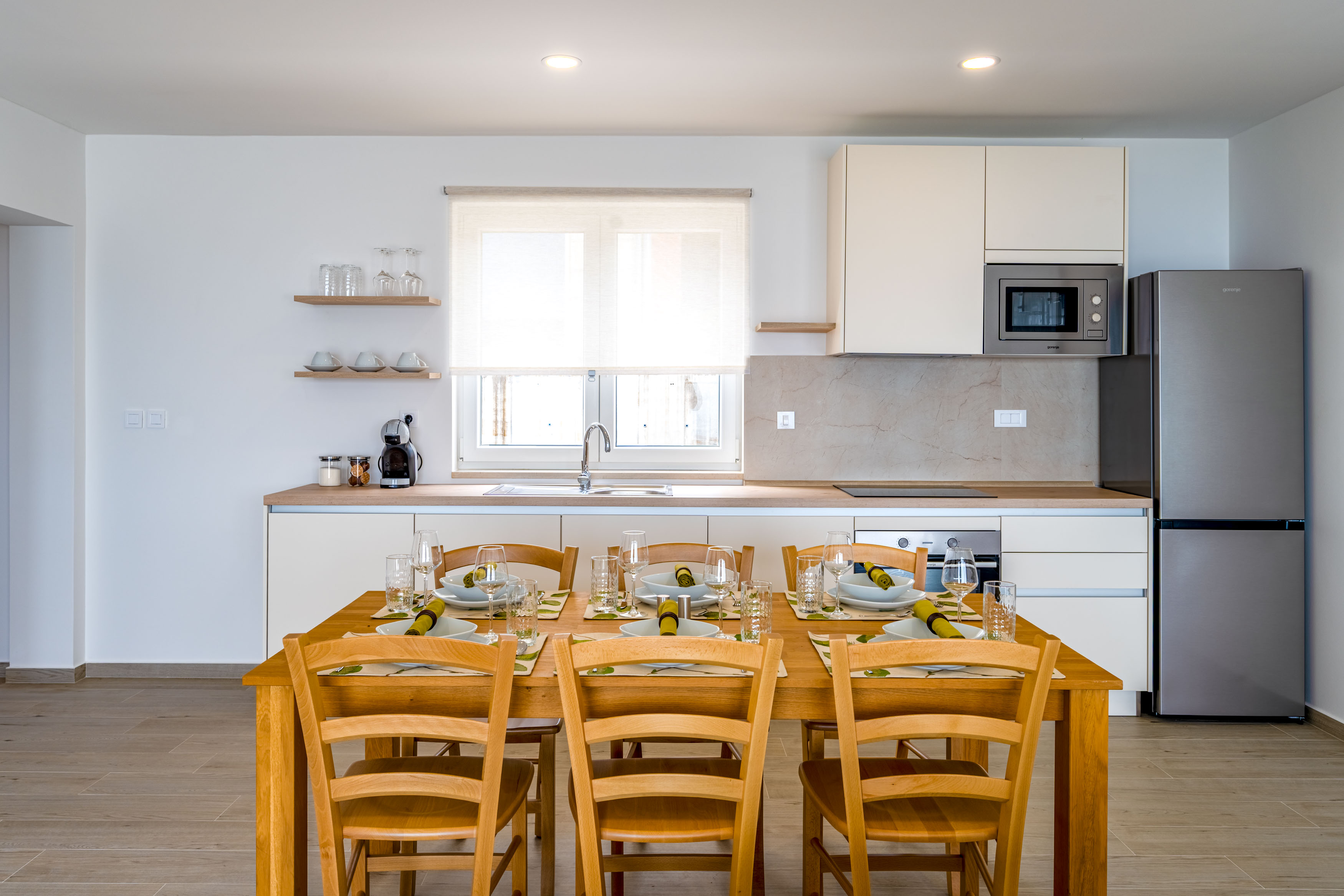 This elegantly appointed 100 m2 2nd apartment offers a refined retreat for travelers who appreciate comfort, tranquility, and attention to detail. Thoughtfully designed to blend functionality with a sense of home-like warmth, the apartment features a fully equipped kitchen, air-conditioning, SAT/Smart TV, free WiFi, and a Nescafé Dolce Gusto™ coffee machine to elevate your morning ritual. Bedroom has individual air conditioning/heating system and wall-mount controlled blackout blinds for sleep and complete privacy. High-quality bed linen and towels, a private safety box, and final cleaning are included for a seamless and worry-free stay. Guests can also enjoy a shared swimming pool, a beautifully arranged barbecue area, and secured on-site parking.